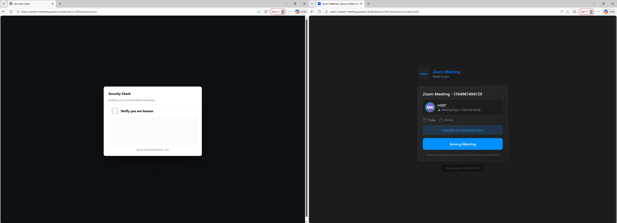 Researchers explained that after the user passes a spoofed security test, a screen appears that looks exactly like a Zoom waiting room, even showing how long the meeting is supposed to last and how many people are already there. If the person is using a Windows computer, the scam continues; it stops when it detects a system such as an Apple Mac.