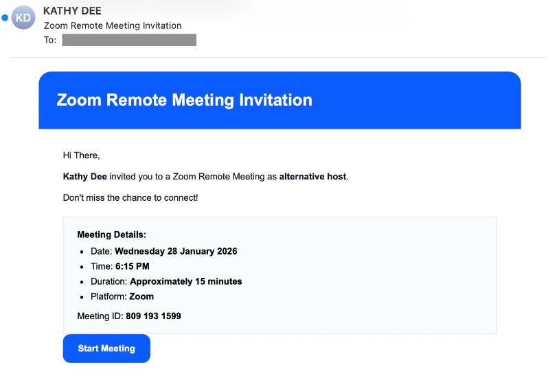 The attack usually begins with a simple email that looks exactly like a standard Zoom invitation, featuring a large button to start the meeting. However, instead of going to the official Zoom website, it launches a series of fake security checks.